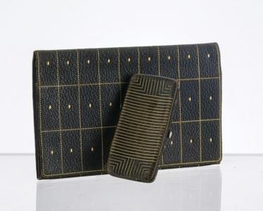 Portefeuille en cuir noir à décor or, modèle de Josef Hoffmann (...