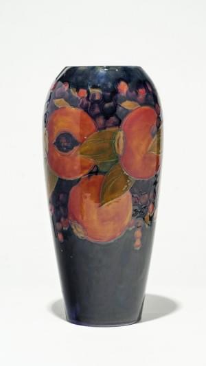 Vase balustre, céramique à décor de fleurs orange sur fond noir,...