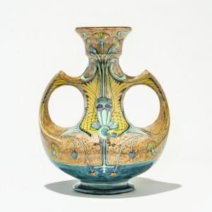 Deux anses latérales et col évasé, céramique émaillée polychrome...