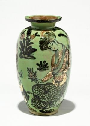 Vase balustre, céramique à décor émaillé de personnages persans,...