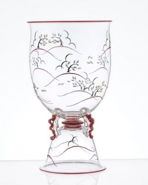 Verre à décor gravé de trois femmes symbolisant les vendanges, s...