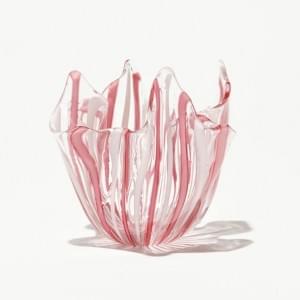 Vase fazzoletto, verre bandé blanc et rose, marqué, H 8,5 cm