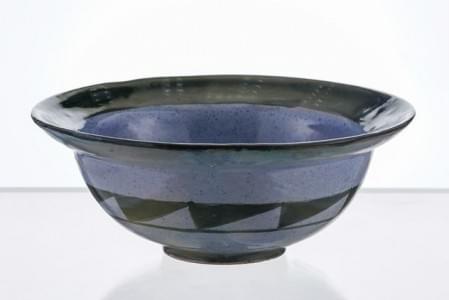 Coupe évasée japonisante à glaçure gris bleu, céramique émaillée...