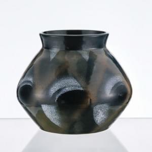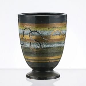 Vase sur pied, céramique émaillée noir, vert et argent, non sign...