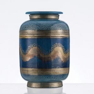 Vase à décor des lignes ondulantes, céramique émaillée bleu et a...