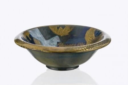 Coupe circulaire, à décor abstrait, céramique émaillée noir, ble...