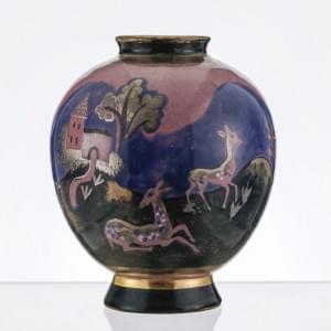 Vase ovoïde à décor d'antilopes en pleine nature, céramique émai...