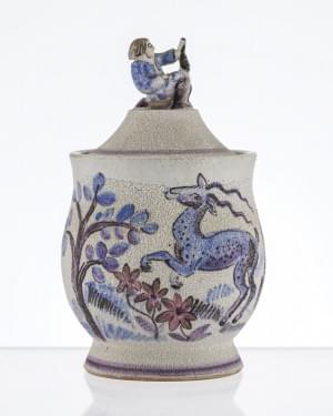 Potiche couverte à décor d'une antilope, céramique émaillée bleu...