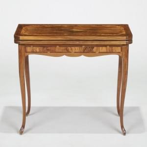 Marqueterie de bois fruitier, pieds cambrés, 79x42x31 cm