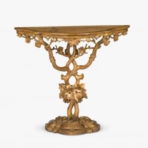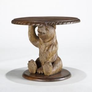 Pied tripode, bois sculpté et marqueté, 67x71 cm