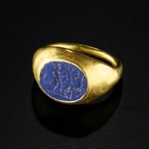854. Bague sertie d'une intaille sur lapis-lazuli, époque romaine, Ie...
