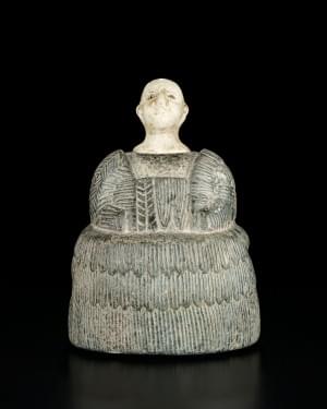 Statuette de femme vêtue d'un kaunakès, stéatite et calcaire, H...