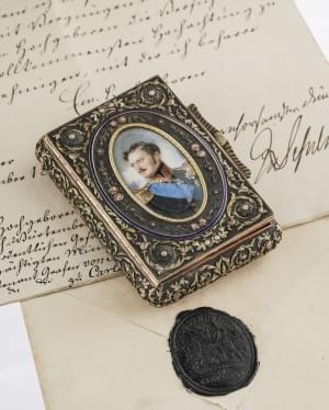 191. Tabatière à décor trois ors de rinceaux et ornée du portrait du...