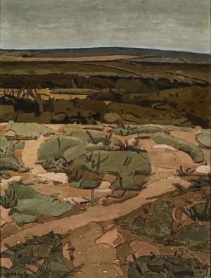 Paysage aux buissons, huile sur toile signée, 115x86 cm