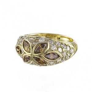 326. Bague bombée sertie de diamants cognac taille navette et semi pa...