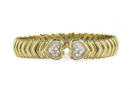 334. Chopard, Happy Diamonds, bracelet jonc ouvert à maille godronnée...