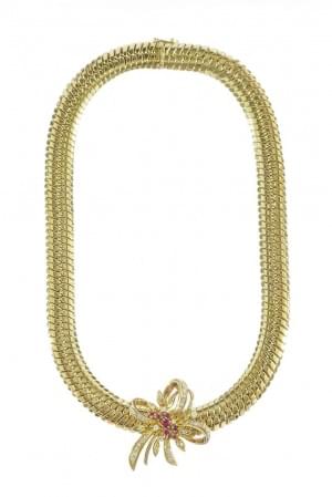 345. Bucherer, collier à maille plate en épi de blé orné d'une broche...