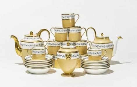 Nyon, début XIXe s, faïence, comprenant: théière, sucrier, jatte...