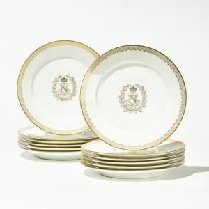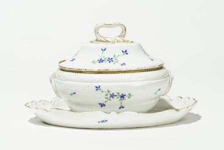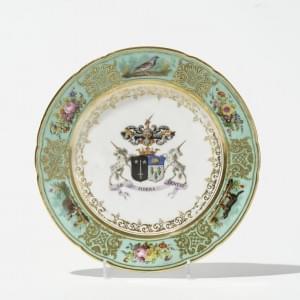 412. Bouillon sur présentoir à bordure filets droits, armorié Favre