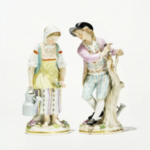 Zurich, paire de figurines polychromes, porcelaine, H 21 cm