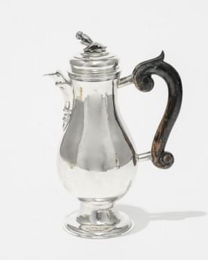 372. Chocolatière piriforme tripode gravée d'armoiries d'alliance d'é...