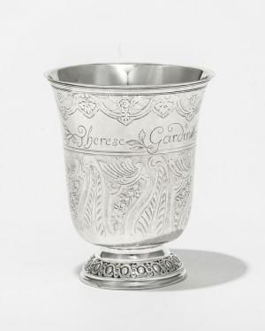 380. Timbale tulipe d'époque Louis XVI à décor de rinceaux et cœur su...