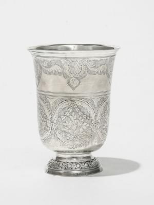 379. Timbale tulipe d'époque Louis XV à décor ciselé d'entrelacs et g...