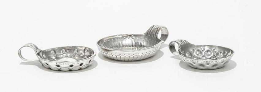 388. Trois taste-vin à anse en enroulement d'époque Louis XVI et Empi...