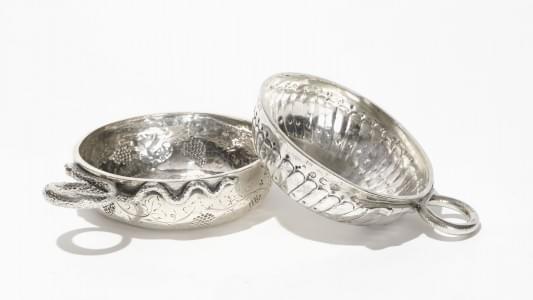 387. Deux taste-vin à anse serpents d'époque Louis XV et Louis XVI