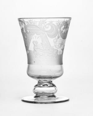 396. Timbale en verre gravée de quatre médaillons représentant les Ev...