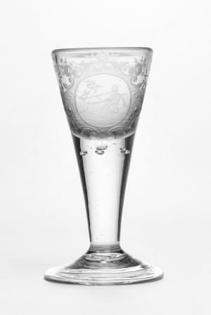 397. Verre conique sur pied gravé d'un Amour perçant le cœur d'une fe...