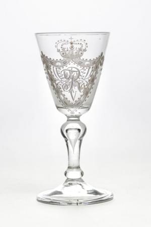 398. Verre sur pied de forme tulipe gravé aux armes de la famille roy...
