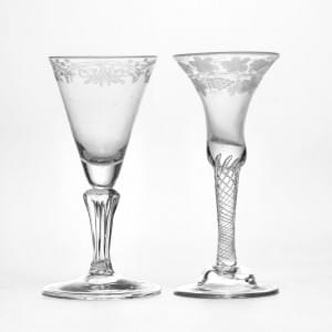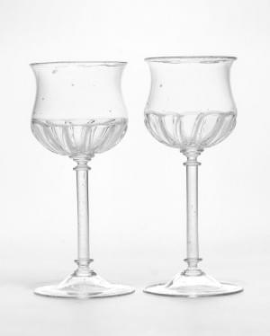 400. Deux verres sur pied à décor gravé de pampres de vigne et palmet...