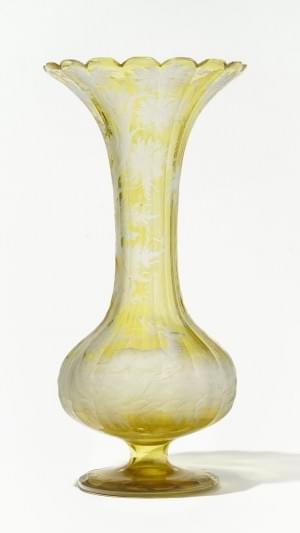 Cristal jaune à décor gravé de scènes de chasse, H 40 cm