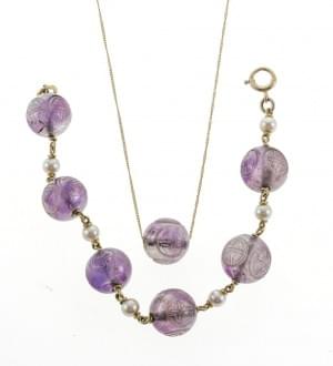 3020. Lot d'un collier et d'un bracelet retenant des perles d'améthyst...