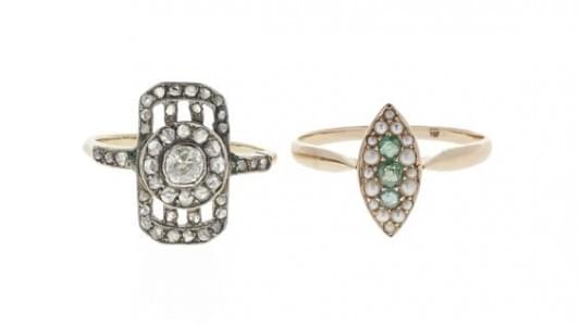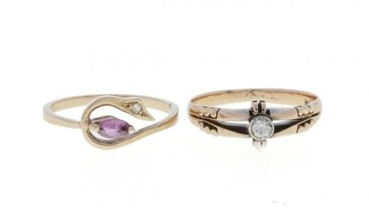 3082. Lot de deux bagues, l'une sertie de trois diamants taille ancien...
