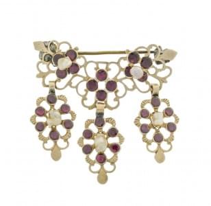 3024. Broche de corsage sertie de grenats et perles