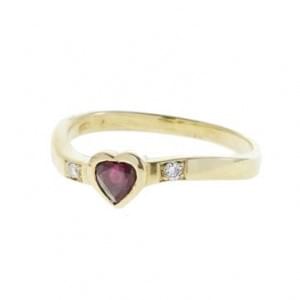 3035. Bague cœur sertie d'un rubis épaulé de deux petits diamants