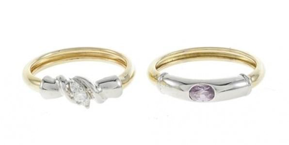 Or, or gris et or rose 750, doigt 49-9 et 50-10, 8 g. Provenance...