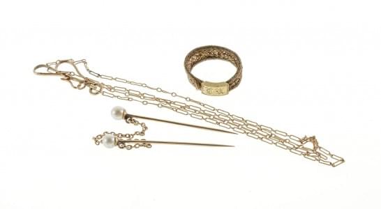 Travail ancien, or 585, L 6 cm, 8 g. Provenance: Château fribour...