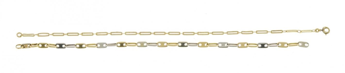 3056. Lot de deux bracelets, l'un à maille figaro et l'un à maille alt...
