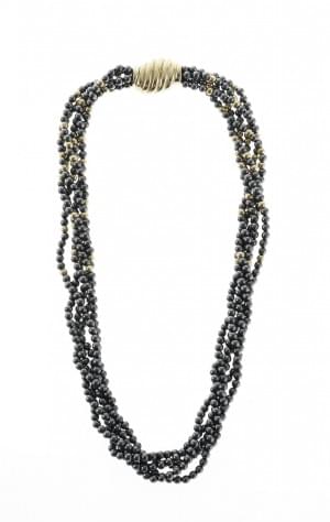3061. Collier multi rangs torsadé d'hématites ponctué de perles d'or