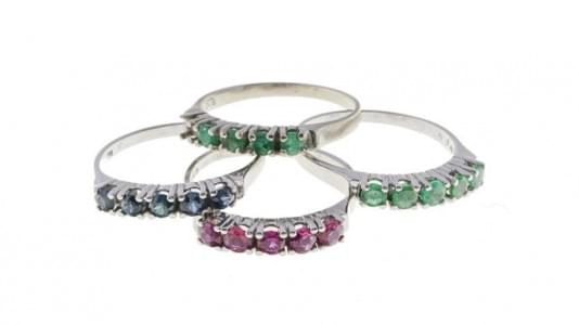 3071. Suite de trois bagues serties l'une d'une ligne de saphirs, l'un...