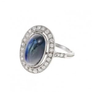 3091. Bague sertie d'un saphir en pain de sucre entouré de diamants