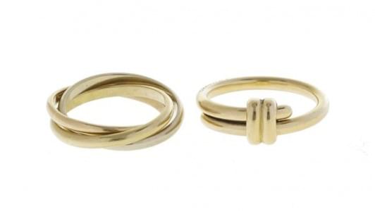 Or 750 et or rose 585, doigt 48-8 et 50-10, 6 g. Provenance: Pri...