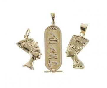 3098. Lot de trois pendentifs, deux à motif de têtes de reine d'Egypte...