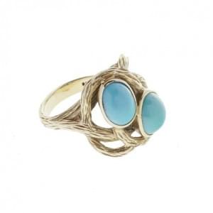 3099. Bague ornée de deux turquoises en cabochon serties dans des entr...