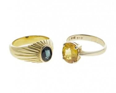 Travail ancien, or 750, or 585 et argent, doigt 49-9 et 53-13,3...