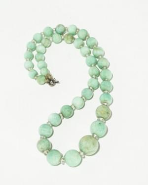 3427. Collier de perles de jades alternées de disques facettés de cris...