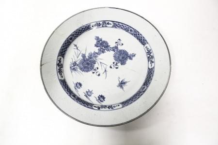 Porcelaine à décor blanc bleu de motif floraux, D 16 cm